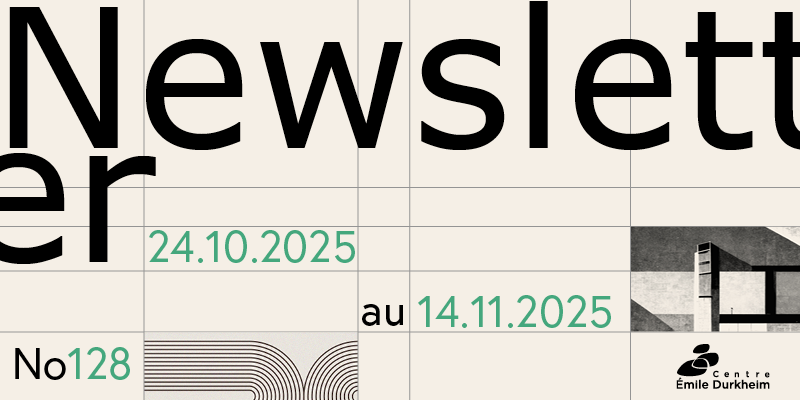 Décès de Charles-Henry Cuin : l’hommage de François Dubet | | Charles-Henry Cuin, ancien professeur à la faculté de sociologie de l'Université de Bordeaux jusqu'en 2015 et chercheur au Centre Émile Durkheim, nous a quittés le 13 octobre 2025. François Dubet, professeur émérite de sociologie, a souhaité lui rendre hommage. Lire | | | | | #Compte rendu du Conseil de laboratoire *information à l'attention des membres permanent·es du Centre Émile Durkheim | | Le bureau du Conseil de laboratoire s'est tenu le 22 octobre 2025. Vous pouvez prendre connaissance du compte rendu sur l'Intranet : Onglet : Instances du laboratoire retrouvez à cette adresse, tous les CR des conseils et bureaux passés *munissez-vous de vos identifiants de connexion au site web du Centre Émile Durkheim En savoir + | | | | | //Vu ces derniers jours// | | | //Parutions et actualités des chercheur·ses permanent·es et associé·es// | | | | | Céline Jouin Le marché du droit. Droit social et capitalisme chez Otto von Gierke Paris, Classiques Garnier (PolitiqueS, 24), 2025 En savoir + | | | | | Camille Bedock ▪ "The Social and Political Determinants of Support for Democratic Innovations in France", Élodie Druez, Frédéric Gonthier, Camille Kelbel (eds.) [et al.], French Democracy in Distress. Challenges and Opportunities in French Politics, Palgrace MacMillan (French politics, society and culture), 2025, p. 371-397. En savoir + Daniela Cuadros Garland ▪ "Sobrevivir a un cambio de régimen político: el Partido Comunista de Chile y sus militantes durante los eventos críticos de septiembre-diciembre 1973", Izquierdas, 54, 2025, p. 1‑32. Lire Magali Della Sudda ▪ "Le paradoxe catholique", Camille Froidevaux-Metterie (dir.), Théories féministes, Paris, Le Seuil (Sciences humaines), 2025, p.464-469. En savoir + ▪ "Ressentis et émotions, des Gilets jaunes aux cahiers de doléances", Séquence émotion : la France du ressenti, Editions de l'aube (Monde en cours - Les petits cahiers tendance), 2025, p.67-84 En savoir + Magali Della Sudda & Elisabeth Godefroy ▪ "Les gauches et les Gilets jaunes", Julien Talpin, Nouveau peuple, nouvelle gauche, Amsterdam, Les livres de l'institut La Boétie, 2025, p.161-176. En savoir + François Dubet ▪ "La massification et le tri. La fabrique du ressentiment scolaire", Esprit, novembre 2025. En savoir + Olivier Gajac ▪ "Les coopératives de consommation face à la politisation métropolitaine : la nouvelle politique publique agricole et alimentaire à Istanbul", Politiques locales d’ESS au service de la transition socio-écologique. Un recueil international de 17 Working Papers, Groupe de travail recherche du GSEF, Working Paper, Forum mondial de l’économie sociale et solidaire, GSEF Bordeaux 2025, 27 octobre 2025. (avec Kiraz Özdoğan) Xabier Itçaina ▪ "Gouverner l’économie par ses marges ? Autour de la gouvernance territoriale de l’économie sociale et solidaire", R. Pasquier, V. Simoulin, J. Weisbein (dir.), La gouvernance territoriale : pratiques, discours, théories (nouvelle édition), Paris, LGDJ, 2025, p. 217-234. Gilles Pinson, Andy Smith ▪ "La gouvernance territoriale est-elle soluble dans la transition écologique ? Réflexions à partir des politiques d’aménagement et d’urbanisme et de la place qu’elles font aux enjeux environnementaux", R. Pasquier, V. Simoulin, J. Weisbein (dir.), La gouvernance territoriale. Processus, reconfigurations, contestations, 3e édition, Paris, LGDJ, 2025, p. 281-301. (avec Vincent Béal) En savoir + Tinette Schnatterer ▪ "Polling and Democratic Representation: The Commissioning of Polls by the French Presidents Sarkozy and Macron", Élodie Druez, Frédéric Gonthier, Camille Kelbel (eds.) [et al.], French Democracy in Distress. Challenges and Opportunities in French Politics, Palgrace MacMillan (French politics, society and culture), 2025, p. 109-137. (avec Céline Belot) En savoir + Vincent Tiberj ▪ "Do Parties Still Matter? The Disappearance of the French Parties in the Electorate", Élodie Druez, Frédéric Gonthier, Camille Kelbel (eds.) [et al.], French Democracy in Distress. Challenges and Opportunities in French Politics, Palgrace MacMillan (French politics, society and culture), 2025, p. 299-314. En savoir + | | Élodie Druez, Frédéric Gonthier, Camille Kelbel, Nonna Mayer, Felix-Christopher von Nostitz, Vincent Tiberj (eds.) French Democracy in Distress Challenges and Opportunities in French Politics Palgrave MacMillan (French Politics, Society and Culture), 2025 En savoir + | | | | | #Colloques, séminaires, conférences académiques | | Joséphine Brive ▪ "Putting the margins at the center: reflections on the attempt to institutionalize Ukrainian studies in Czechia", Panel Higher Education, Social Entrepreneurship, and Cultural Management, Organizations and Institutions in Times of War - Ukraine, Eastern Europe and Beyond, Université de Ratisbonne (Allemagne), 9-11 octobre 2025. Joan Cortinas Munoz ▪ Modérateur : Table ronde 2 : Mener des actions de communication pour contrer le marketing des industriels du tabac, alcool et jeux d'argent et de hasard, Symposium SFSP 2025 'Mobilisation des déterminants commerciaux de la santé pour une meilleure prévention : retours d’expériences en plaidoyer et en communication', réseau RECLAMS sur les déterminants commerciaux de la santé, Lille Grand Palais, 6 novembre 2025. En savoir + ▪ "Les déterminants commerciaux de la santé : le cas des activités politiques de l’agro-alimentaire", Colloque international 'Fresh & Reshape', Réseaux thématiques CNRS, Maison des sciences de l'homme, Montpellier, 4-6 novembre 2025. En savoir + ▪ "L’improbable écologisation des politiques hydriques en Californie. Éléments pour une étude de champ", Session : Politiques environnementales et transition écologique, Colloque international 'La Californie : épicentre des sciences sociales ?', Paris, 16-17 octobre 2025. (avec Fra
