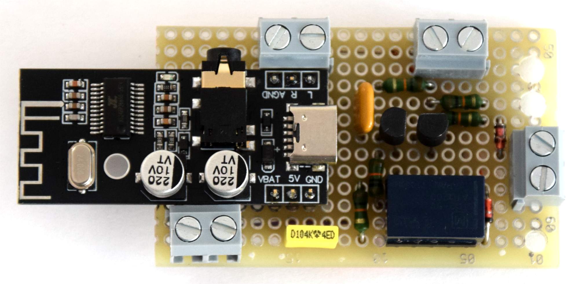Voici un petit circuit à câbler puis à fixer et à raccorder sur le ModulAM pour bénéficier d’une liaison Bluetooth
